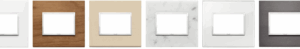 Pure essence of form and material. Slim profiles to emphasise the design. Precious materials and choice finishes that embrace squared corners and striking silhouettes for a cover plate that blends in seamlessly in any setting, creating an original look every single time.